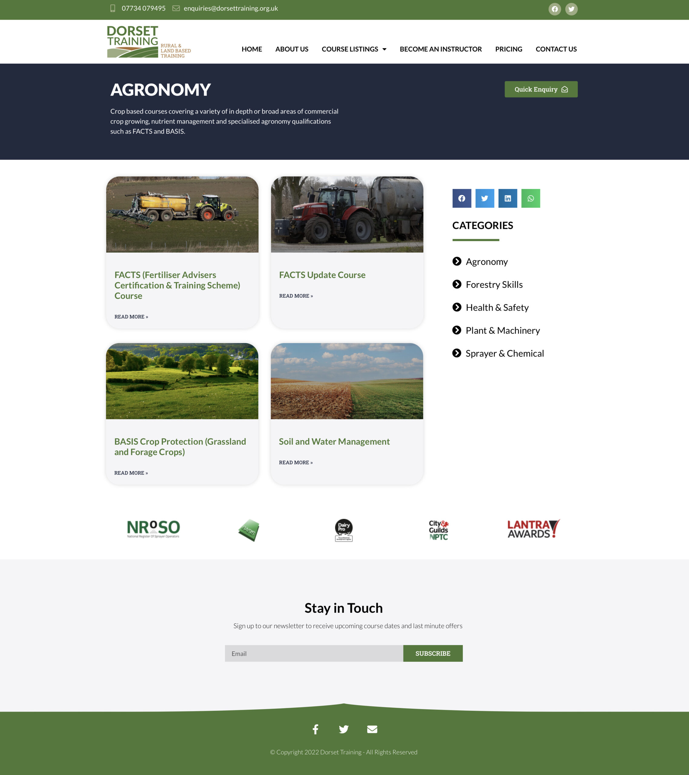 Our client, a leading training provider offering courses in Agronomy, Machinery, Pesticides, Health & Safety, and Forestry, approached us with a goal to boost their course enquiries and bookings during their quieter months. Their existing website, which was created around 8 years ago, had become text-heavy and outdated, and they were looking for a fresh approach to attract and engage their target audience.